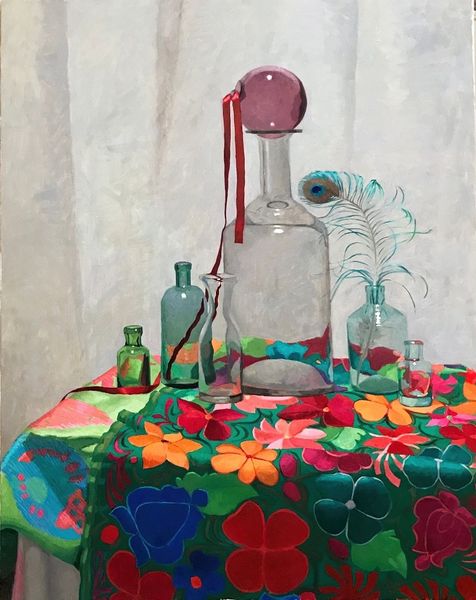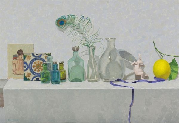 Njideka Akunyili Crosby created this complex composition of mixed media, showcasing a still life imbued with cultural symbolism. The table arrangement, laden with objects and framed photographs, speaks volumes about identity and heritage. Note the prominence of the lantern, a beacon of light cutting through darkness, that has appeared across art history, from religious paintings where it symbolizes enlightenment, to more modern uses representing guidance or hope. Here, it’s juxtaposed with personal photographs, integrating the past with the present. This is a recurring motif that bridges temporal and cultural divides. The arrangement of objects, seemingly random, yet carefully considered, creates a psychological landscape. Memories are layered, much like the artist's technique, reflecting how personal and cultural histories are intertwined. The artist engages viewers on a deep, subconscious level, evoking feelings of nostalgia, identity, and cultural connection. The cyclical progression of symbols evolves with our interpretations, adapting to new historical contexts.