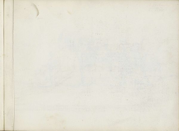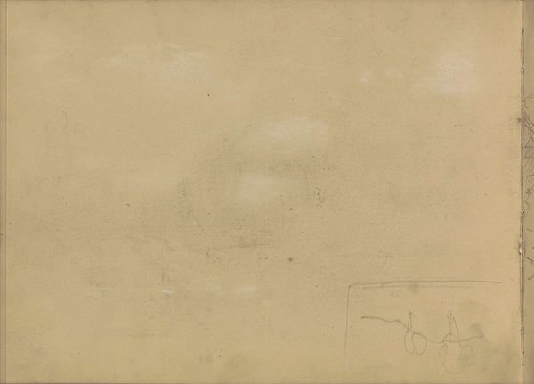 Editor: So, here we have Willem Witsen's "Studie," a landscape drawing from 1878, rendered in pencil on paper and currently held at the Rijksmuseum. It's quite… subtle, almost faded. There’s a definite sense of stillness and perhaps a bit of melancholy hanging about. What captures your eye in this work? Curator: Stillness indeed! For me, this "Studie" is like a whispered memory. Do you notice how Witsen uses the pencil almost like mist? He's not giving us hard edges or definite shapes, more like a fleeting impression. It's as if he's trying to capture not just what he sees, but how it *feels* to be in that landscape, almost like he is coaxing emotion through shadows.. What sort of stories might these bare, lightly sketched landscape details hold? Editor: That’s a beautiful way to put it - coaxing emotion through shadows. I hadn’t considered that. Maybe it’s the memory of a specific place, something intensely personal for Witsen. It’s easy to get lost in the vast, detailed landscapes of the time; Witsen's version is beautifully understated. I can almost hear a slight breeze or maybe just feel the chill in the air. Curator: Exactly! He invites us into his personal contemplation of the landscape. There is intimacy in those nearly vanished structures in the haze, don't you agree? Maybe the subtle suggestion is the point. I see this not just as a study for a larger piece, but almost as a little visual poem – a quiet, contemplative moment captured in pencil. And did we notice that small annotation on the far right? A clue that is left hanging almost as an afterthought to us the viewers... What stories would *you* say the whispers are sharing? Editor: A visual poem... I really like that. It’s definitely given me a fresh appreciation for pieces that might otherwise seem too understated. It is also a fantastic perspective from looking at an Impressionist work, whose aim after all, is about "impressions" that can speak volumes. Curator: Agreed. The piece serves as a quiet rebellion against grandiose depictions, favoring quiet subjectivity instead! A gentle reminder that beauty can exist in the hushed tones of everyday experience.