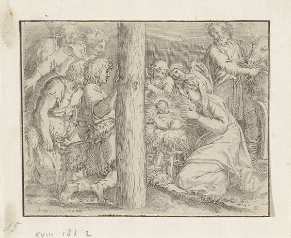Edme Bouchardon created this drawing, A Saint Clothing the Poor Among the Ruins of an Earthquake, using pen and brown ink, with brown wash over graphite. The composition centers on a classical architectural backdrop contrasting sharply with the human suffering in the foreground. This juxtaposition is not merely decorative, but serves as a commentary on the transience of human achievement versus enduring human need. Bouchardon's use of line and wash creates a dramatic texture, almost tactile in its evocation of rubble and ruin. The figures, rendered with detailed, expressive line work, are arranged in a manner that directs our gaze through the scene. The saint's act of charity is framed by the devastation, suggesting a moral imperative amid chaos. The contrast between the architectural stability and the human vulnerability destabilizes the established meaning of classical grandeur. This visual strategy invites us to reconsider how power and compassion intersect in times of crisis, challenging any fixed interpretation.