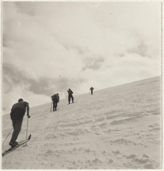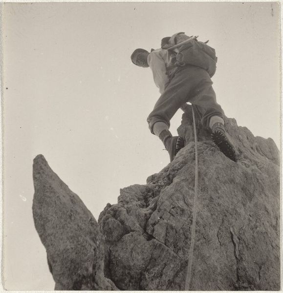 Robert Frank captured this image, "Climbers--Sports," with a camera, freezing a moment of human endeavor in stark monochrome. Our protagonists, ascending a snow-laden peak, evoke an age-old symbol: the ascent. The act of climbing carries with it the weight of ambition, spiritual quest, and personal challenge. Recall, if you will, the myth of Icarus or the trials of Hercules—each a narrative of striving, of reaching for something beyond the grasp. Even in our collective subconscious, mountains represent obstacles and transcendence. The climber's silhouette against the stark sky is a modern echo of these ancient aspirations. The ropes binding the figures together speak to shared risk, and a common fate. This image, born from the modern era of sports and exploration, taps into the deep well of human striving, a visual echo passed down through the ages.