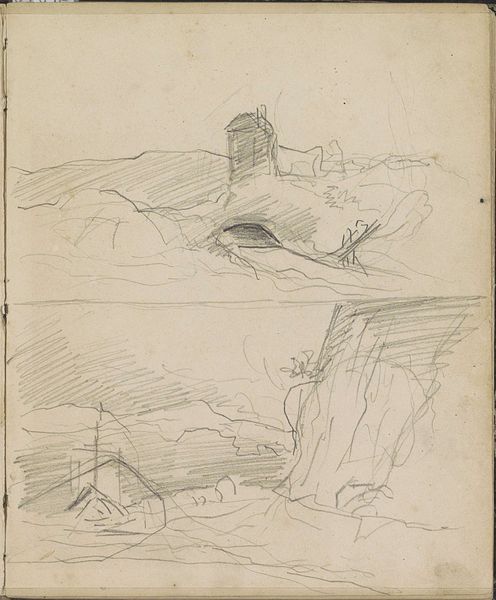 Curator: Willem Witsen created this pencil drawing, "Landschap met schapen," sometime between 1884 and 1887. It now resides here at the Rijksmuseum. Editor: It feels so fragile. Like a memory barely sketched on paper, threatening to fade if I look too directly at it. Curator: Witsen was working during a fascinating period in art history. Impressionism was taking hold, but realism still held sway. This piece reflects that tension, don't you think? Editor: Absolutely! You can see that struggle, that embrace of fleeting impressions. The 'sheep,' they’re more like puffs of cloud, and the landscape itself, an echo. Is it realism’s hold on him that keeps these elements tethered to our world? Or are these ghostly apparitions from another? Curator: It's interesting that you say ghostly, because the social and political context of this piece are so tied up in the artistic milieu of late 19th-century Netherlands. Artists were breaking from the establishment, searching for ways to represent modern life outside academic restrictions. It reminds us that art is born from conflict. Editor: Which makes it all the more beautiful. All of these faint suggestions make me feel wistful, contemplative even. There's so little detail, yet it evokes such a strong emotion. It is just a humble drawing, but is that just because it lacks pomp and fanfare? I could linger here. Curator: It’s tempting to interpret those ‘sheep’ as some kind of metaphor, the innocent lost in modernity or a commentary on society itself. We want our artists to mean something, don’t we? It is powerful stuff! Editor: Agreed! Whether commentary or intimate, I feel a genuine presence emanating from this. I think the real sheep are the people who don't see what he's captured here. Curator: It has been truly insightful considering Willem Witsen's "Landscape with Sheep". It’s proof that even the humblest medium, a simple pencil sketch, can open vast landscapes of meaning. Editor: Yes, and I am eager to remember this particular moment here too, thinking and reflecting within it's simple lines, a faint echo to call me back.