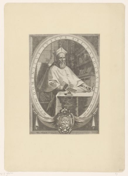 Editor: This is Theodor de Bry's "Jonuses Bassa," a small engraving from around the late 16th century, now at the Harvard Art Museums. I'm struck by how meticulously detailed the portrait is, given its size. What can you tell me about its historical context? Curator: This portrait reflects Europe's fascination with, and often biased depiction of, figures from the Ottoman Empire. De Bry's work, frequently disseminated through printed books, shaped European perceptions of other cultures. How do you think this image functioned in that context? Editor: I imagine it reinforced existing stereotypes, perhaps portraying "Jonuses Bassa" in a way that served a political agenda? Curator: Precisely. The framing, the text, even the style of portraiture—all contribute to a specific narrative. By understanding the socio-political climate, we gain insight into the power dynamics at play in this seemingly simple image. Editor: It’s fascinating to consider how an artwork like this, intended for a wide audience, played a role in shaping public opinion. Curator: Indeed. Art is rarely neutral; it actively participates in the construction of history and identity.