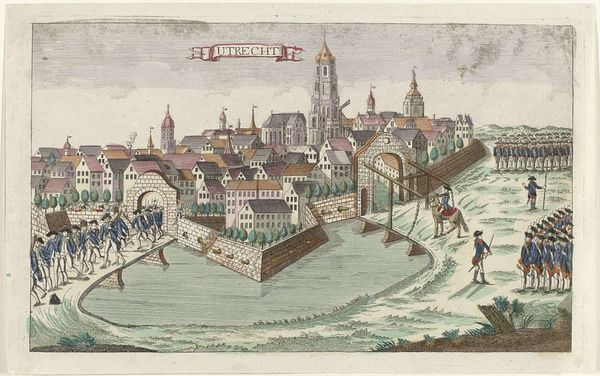 Editor: Here we have Thomas Shotter Boys' "The Tower and Mint from Great Tower Hill, plate two from Original Views of London as It Is," created around 1842. It's a print combining lithography and etching, among other techniques. I'm immediately drawn to the detailed depiction of everyday life against the backdrop of such historical structures. How do you interpret this work in terms of its historical context? Curator: Well, this print is a fascinating window into Victorian London, and its power lies in depicting these structures as part of the burgeoning urban landscape, right? Notice how Boys positions the Tower and the Mint—symbols of power and wealth—not in isolation, but embedded in a bustling scene of commerce and daily routines. It almost democratizes them, inserting them into public life. Editor: So it's making a statement about accessibility and the public role of these institutions? Curator: Precisely! By the 1840s, England was experiencing rapid industrialization and urbanization. Boys' choice to show these monuments alongside street vendors, children playing, and fashionable individuals, highlights a shift in their cultural relevance. Were these historical sites changing their socio-economic functions? Or just their image? Editor: That’s a great question. I hadn’t considered the tension between these timeless symbols and the transient nature of city life at the time. Curator: Consider, also, the deliberate choice of media – the relatively new technique of lithography made detailed images accessible to a wider audience. It wasn’t just about seeing London; it was about possessing a view of London. How does this relate to a rise in tourism? Editor: I suppose making London accessible to all would give the elite less prestige? I can also see the artist democratizing public spaces in their art. I've learned to appreciate this as more than just a pretty cityscape. Thanks for opening my eyes! Curator: My pleasure! Thinking about art as part of its social and economic world can really deepen our understanding and appreciation.