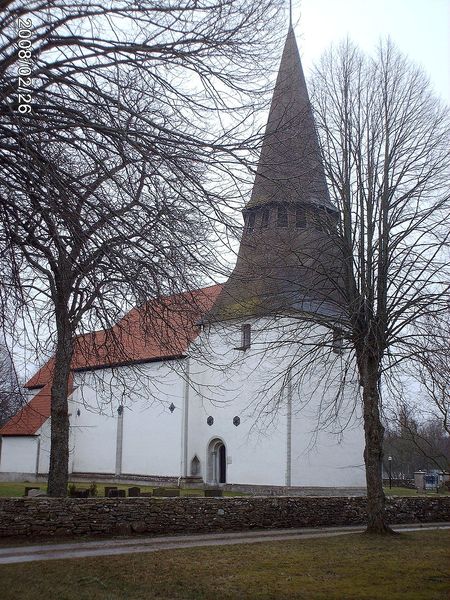 Curator: What a striking image. It's a photograph of Fardhem Church, situated on Gotland Island in Sweden. Construction on the building finished around 1200. It’s a beautiful example of Romanesque architecture. Editor: It is! The stark white walls against that crisp blue sky and the snow-covered ground—the color palette is remarkably simple, yet dramatic. It’s so austere, even for religious architecture. Curator: It reflects the social structures of the time, definitely. Romanesque churches often projected power, both spiritual and temporal. Local materials were used to project cultural meaning while echoing established design ideas throughout Christendom. Gotland's location as a major trading hub surely shaped the materials and manpower available to build this. Editor: The roof almost appears to be constructed of wood tiles, it's fascinating. And it does make you wonder, where did those resources originate? Building on this scale, and to this design—that represented considerable consumption. Were these truly local materials and workmanship, or was this a statement dependent upon imported commodities and skills? Curator: That's a very valid consideration, actually. Church construction provided widespread employment opportunities, it boosted trade and attracted skilled stonecutters, carpenters, and artists. The labor was sourced locally, which can often provide income, as well as social and artistic opportunity. But in terms of building material, the very roof you mentioned likely took collaboration with merchants throughout the region. Editor: The use of Romanesque arches appears so calculated for impact. Even its physical orientation within the landscape speaks volumes. And that imposing spire suggests considerable effort. Curator: The design’s certainly meant to make a statement, yes. Romanesque style served to create specific devotional settings, reflecting the social order that the Church helped maintain and administer. And to reiterate that you can trace the materials and even workforce coming from a web of merchants and artists working at once locally, nationally, and sometimes internationally. Editor: Looking closer, the stone construction must have been arduous, given the time period and apparent limited tool-use. The material constraints surely impacted both aesthetics and structure. Curator: Exactly! We need to examine architecture such as this, yes, as part of this grand aesthetic movement, but equally to view the complex socioeconomic situations that afforded and conditioned it. Editor: I find myself considering all that unseen labor. It brings a human element that goes beyond aesthetic. Curator: Yes. Viewing this church with both lenses deepens the experience so profoundly.