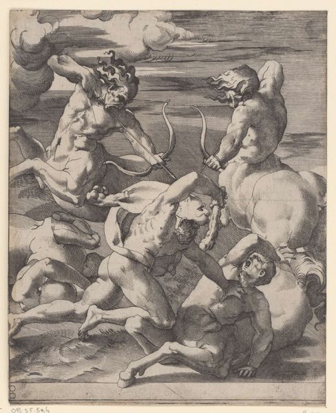This print by Giovanni Jacopo Caraglio depicts Hercules’s struggle with the river god Acheolus, who has taken the form of a bull, while three women with cornucopias watch. The scene is rich with symbols of strength, fertility, and the triumph of order over chaos. Hercules's struggle with the bull reminds us of similar myths, like the Cretan bull subdued by Theseus, echoing primal contests between man and beast. Observe how this motif persists through the ages, finding echoes in Picasso's Minotaur, where the bull embodies raw, untamed passions lurking within the human psyche. The cornucopia-bearing women evoke images of earthly abundance. This symbol can be traced back to ancient goddesses of fertility. Such depictions tap into humanity’s collective memory, stirring subconscious associations. In Caraglio's work, the victory of Hercules is not just a physical feat but a powerful, emotional statement about the human will to prevail. This visual language of symbols resurfaces, evolving, and taking on new meanings in different historical contexts.