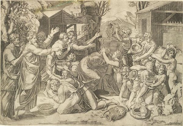 Theodoor van Thulden created this print, titled "Odysseus and Telemachus Washing," around 1643. It depicts a scene from Homer's Odyssey, but it also evokes social dynamics familiar to van Thulden's 17th-century Dutch audience. The image’s visual codes are rooted in classical antiquity, yet they speak to contemporary concerns about hospitality, hierarchy, and the expectations placed on heroes. The act of washing, typically performed by servants, is here imbued with a sense of ritual and significance, elevating the status of Odysseus and Telemachus. Van Thulden, working in a time of burgeoning Dutch maritime power, invites us to reflect on the social conditions that shape our understanding of heroism. Are these figures truly heroic, or are they merely beneficiaries of a system that glorifies power and privilege? As art historians, we can delve deeper by exploring period literature and analyzing the patronage networks that supported artists like van Thulden. Art offers a lens through which to examine social norms. Its meaning is always contingent on the cultural and institutional contexts in which it is created and received.