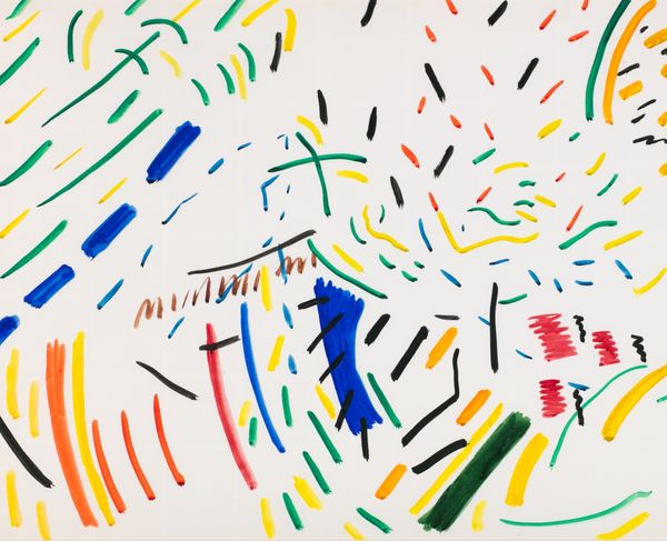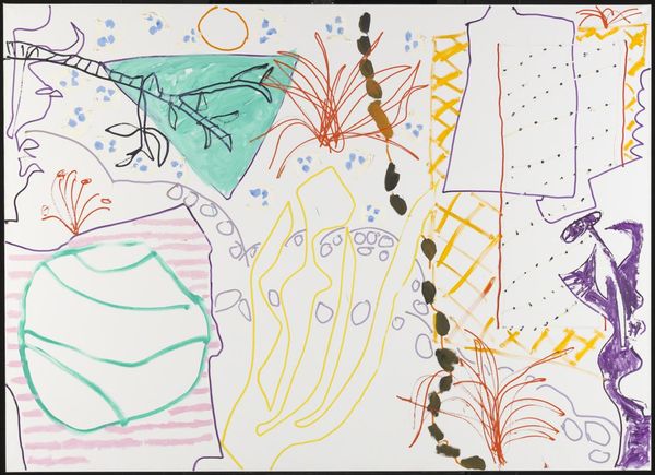 Editor: This is Pablo Rey's "Espacio recorrido #72," from 2000, done in watercolor. It's… playful, I guess? All these floating shapes. What do you see in this piece? Curator: It’s interesting how Rey uses watercolor, traditionally associated with amateur art, to create these almost technical drawings. Notice the interplay between the gestural looseness of the paint and the precision of the lines. It makes me think about how so-called 'high art' appropriates the techniques and materials of craft, blurring those established hierarchies. Editor: So, the *way* he's using the watercolor is significant? Like he's commenting on…the art world itself? Curator: Precisely. Think about the labour involved in producing each shape, each line. He’s emphasizing the process, the very *making* of the art. Where do these geometric and biomorphic shapes originate? Are they plans, blueprints, biological drawings? Their function isn't obvious and their relation is ambivalent. It could reflect a globalized society. Does that seem a reasonable interpretation? Editor: It does. I hadn't thought about the time he spent on it. The lack of a clear function... makes you wonder about our consumer culture in the late 90s. Curator: And consider where this was made, Argentina in 2000. A time of economic and political upheaval, a time of raw, accessible materiality contrasting against more exclusive techniques. A luxury such as fine art or watercolors. Editor: So the materials themselves reflect a social and historical context. It's not just "pretty colours." Curator: Exactly. That friction between medium and message is precisely what makes the piece compelling. Editor: I see what you mean! I'll definitely look at abstract art differently now. Curator: Good, because seeing is also thinking.