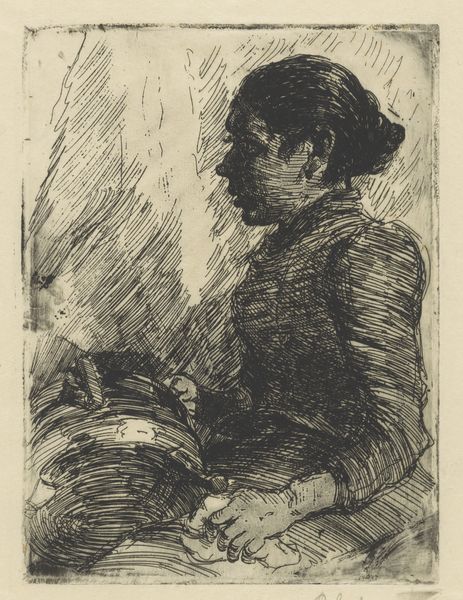 Julian Alden Weir created "Mother and Child" using etching techniques, a process that allows for detailed and intimate portrayals. Weir, who lived from 1852 to 1919, navigated the art world during a period of significant social change. In this piece, we see a mother, likely upper-middle class, seated in a domestic setting, cradling a child. What might appear as a simple domestic scene is actually charged with the cultural expectations of motherhood during the late 19th and early 20th centuries, an era when women were idealized as the moral and emotional center of the home. Weir gives us a glimpse of the tenderness and quiet intensity that characterizes the maternal experience. The image is not overly sentimental; instead, the artist captures the emotional weight of caregiving. This piece invites us to reflect on the complex layers of identity, family, and social expectation that define our understanding of motherhood.
