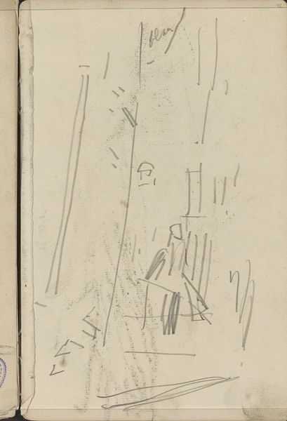 Curator: Here, in the Rijksmuseum’s collection, is a pencil drawing by George Hendrik Breitner, made somewhere between 1884 and 1886. It's called *Wolkenlucht boven gebouwen*, "Cloudscape Above Buildings." Editor: My first thought? Haunting. Almost spectral. Those faint pencil lines barely capturing… what is it, a cityscape struggling to emerge from the mist? Or dissolving back into it? Curator: Breitner, you know, he was so attuned to the energy of the city, particularly Amsterdam. But here, it’s like he's capturing a fleeting moment, the weather turning on a dime. The buildings feel almost secondary to the drama happening above them. I imagine him sketching rapidly, trying to catch that ephemeral light. Editor: Right, and that speed, that urgency… it connects, doesn’t it, to the rapidly changing urban landscape of the late 19th century. Amsterdam, like so many cities, was undergoing intense transformation, expansion… old giving way to new. Curator: Exactly. He's not just drawing clouds; he's hinting at the very breath of a city in constant flux. The unfinished quality, those tentative lines... they're part of its beauty. You can feel the artist wrestling with the subject. Editor: The rawness, for me, underscores that theme of impermanence. Those clouds, they're metaphors for the social and economic uncertainties swirling around at the time, don’t you think? The stark contrast of light and shadow perhaps mirroring the experiences of different social classes… the haves and have-nots of the burgeoning metropolis. Curator: I like that reading. It's true, Breitner wasn't afraid to show the grit of urban life. But looking at this, I'm also reminded of something so simple: lying on your back as a child and watching clouds morph into dragons or castles. There is something profoundly intimate about it, a simple, shared humanity. Editor: Hmm. So, from the personal to the political, from the transient to the eternal. That’s the beautiful thing, isn't it? It lets the work breathe. Curator: Precisely. And gives us, the viewers, room to wander within it.