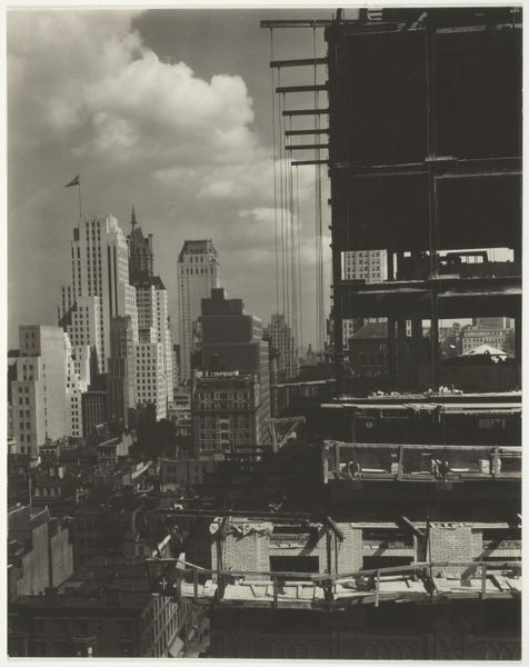 Editor: So, here we have an untitled gelatin-silver print, circa the 20th century, by Edwin Levick, depicting a New York Cityscape. It feels very industrial and imposing to me. What's your perspective? Curator: Well, focusing on the materiality, the gelatin-silver print process itself is crucial. Think about the labor involved: mining the silver, manufacturing the chemicals, the darkroom work, the developing, printing. This wasn't a snapshot; it's a crafted object born from industrial processes. How does knowing that influence your interpretation? Editor: That makes me think about how carefully constructed the image is, from its very beginning. Does the urban environment captured say anything about industry as well? Curator: Absolutely. Look at the built environment. Those skyscrapers, expressions of capital and industry, aren't just backdrops. The sheer density, the verticality – these are material testaments to economic power. And the steam rising? Evidence of ongoing production. We have to ask: Who benefited from this intense construction and labor, and who was exploited in the process? Editor: So, by focusing on the 'how' of its creation, and what the image is depicting, we are revealing broader implications. Does looking at it through a materialist lens affect your appreciation of the artistry? Curator: It shifts it. It's less about romanticism, more about acknowledging the physical reality and social dynamics embedded in its production and subject. It's not just a pretty picture. It's a historical document reflecting labor, capital, and the built environment of its time. I hope thinking this way allows you to view the piece differently as well. Editor: I see what you mean; now the artistry speaks of historical context as well. Thanks!