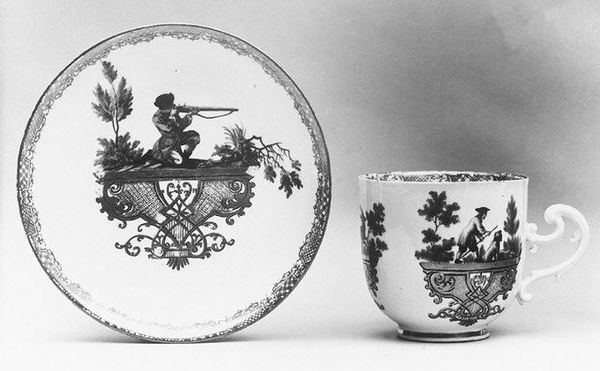 This teabowl and saucer were produced by the Cozzi Manufactory, an Italian porcelain company that operated between 1764 and 1812. The set reflects the 18th-century European fascination with Asian ceramics, particularly Chinese porcelain, but it also speaks to the complexities of global trade and cultural exchange. During this period, tea drinking became deeply embedded in European social rituals, symbolizing status and refinement. But it’s hard to ignore that this ritual was made possible by the exploitation of labor and resources in Asia and elsewhere. The teabowl and saucer are decorated with floral patterns and a shield, referencing both Eastern aesthetics and the symbols of European aristocracy. These objects invite us to think about the intersection of commerce, culture, and power that shaped our world. They remain as testaments to both beauty and the complicated networks of exchange and extraction that underpinned their creation.