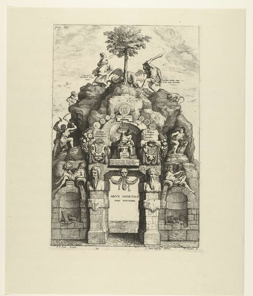 Theodoor van Thulden made this print of the Triumphal Arch of the Mint as part of the decorations for the entry of Ferdinand of Austria into Antwerp in 1635. It commemorates a carefully orchestrated display of power. These temporary structures acted as political stages, meant to solidify the ruler's image in the public eye. In the print, allegorical figures are positioned around the arch, each carefully chosen to communicate specific virtues and attributes of Ferdinand's rule. The figure of Justice, prominently displayed, suggests a commitment to law and order. Busts of bearded men line the base of the structure and reinforce the connection to classical authority. The arch frames the ruler as he passes through it, symbolically and literally entering into power. This print preserves the memory of a specific historical event, but more importantly, it offers insight into the social and political functions of art during the 17th century in the Spanish Netherlands. By consulting period documents such as festival books, we can unpack the meanings embedded within such public displays. The arch is a reminder that art is never neutral, but is often deeply intertwined with the agendas of those in power.