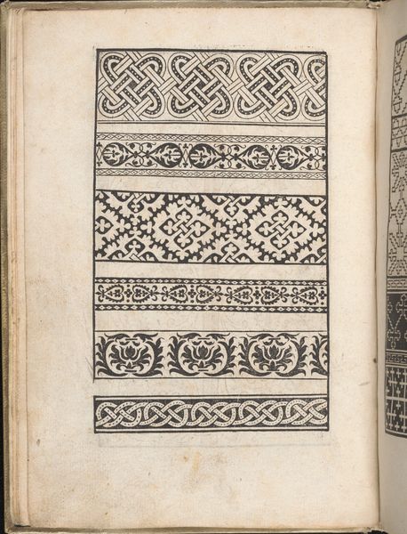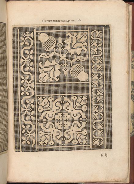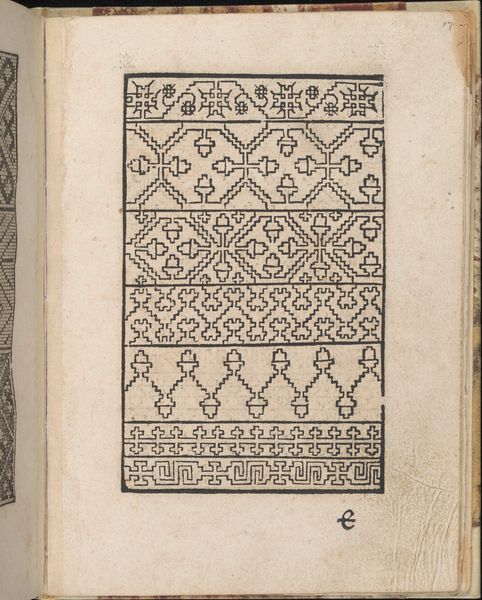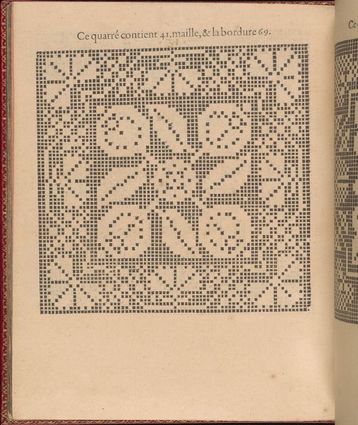 Nicolò Zoppino created this woodcut design, Convivio delle Belle Donne, sometime in the early 16th century. The print presents a stark contrast of black ink against the creamy page, composed of geometric patterns and stylized animal figures. The immediate impression is one of structured order, yet also playful invention. The artwork's dominant structure is its grid. This underlying framework organizes the entire composition, reducing complex forms into a series of uniform squares. Within this grid, Zoppino arranges a variety of motifs—birds, beasts, and floral elements, each rendered with a kind of pixelated abstraction. This technique anticipates modern digital art, while also nodding to the traditional craft of embroidery, suggesting a translation of textile patterns into print. This use of a grid and modular forms challenges fixed representation, pushing us to look beyond the mere image and consider the underlying structure. Is it a celebration of artifice? An exploration of how form shapes our perception? Zoppino invites us to decode the visual language of his time, reflecting on the interplay between nature and art, order and variation.