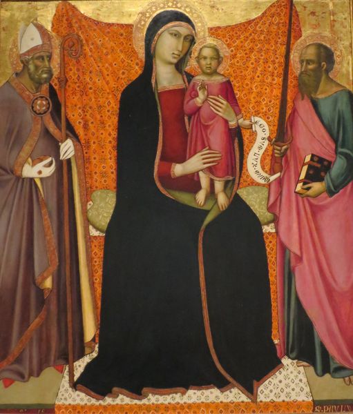 Lo Scheggia created this ‘Madonna with Child and Angels’ panel with tempera and gold on wood. The symmetrical arrangement immediately draws the eye to the Madonna at the centre. She is framed by a group of angels, their forms creating a semi-circle around her. The use of gold leaf flattens the space, creating a heavenly backdrop that denies depth. This abstraction focuses our attention on the symbolic and spiritual nature of the scene rather than its realism. Linear patterns define the folds of the garments and the delicate features of the figures. These lines create a sense of order and refinement, typical of early Renaissance aesthetics. The painting invites us to contemplate the formal structure, and how the calculated arrangement of figures and the use of specific materials contribute to the work's overall expression of divine harmony. It's through this formal approach that we can understand the deeper cultural and philosophical meanings embedded in Lo Scheggia's work.