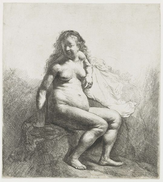 Editor: This is Richard Earlom’s "Weeping Allegorical Female Figure with Putto," created in the 1770s. It's a drawing made with graphite, chalk, and other media on paper. The overwhelming mood to me is sadness; what’s striking is the raw emotion captured. What do you see in this piece? Curator: Indeed, sadness is a prominent theme. Beyond the immediate emotional impact, I'm drawn to the layered symbolism within this seemingly simple composition. Notice how the weeping woman, a clear personification of grief, is paired with a slumbering putto, or cherubic figure. This juxtaposition carries a weighty message steeped in art-historical precedent and cultural memory. The putto, traditionally associated with love and innocence, is here shrouded in shadow. Editor: So, it’s not just a sad lady, but something deeper? Curator: Precisely. The piece exists within the broader context of allegory, inviting us to consider larger themes like loss, mourning, and even the transience of joy. Think about how weeping figures appear throughout history, particularly in depictions of religious or historical tragedies. Does this echo any specific cultural memory for you? Editor: I guess it reminds me a little of depictions of Mary Magdalene at the foot of the cross? Curator: An excellent association. Consider too the stylistic influences at play – echoes of the Baroque dramatic flair mingling with a nascent Romantic sensibility focused on emotion and the individual experience. These clues can open doors to a fuller understanding of what this image might have meant, and continues to mean, to viewers across time. Editor: I see, so it's like a whole web of connected meanings and emotions passed down through art. It’s far more intricate than I initially realized. Curator: Exactly. These images embed themselves in our collective psyche. Now you can see how Earlom uses familiar imagery to communicate very powerful emotions, relying on our learned understanding of visual language. Editor: I will definitely look at allegorical pieces differently now.