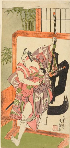 Editor: This is "Three Courtesans" by Kitagawa Utamaro II. The print on paper features beautiful patterns on the women's robes, yet the overall mood feels quite subdued. What can you tell me about the social context of this work? Curator: This piece invites us to consider the complex roles of women in Edo period Japan. Courtesans, though often marginalized, wielded cultural power. How does Utamaro II's portrayal challenge or reinforce societal perceptions of these women? Editor: It’s interesting how the artist uses such delicate lines to depict a subject with such complex social implications. Curator: Precisely. And notice how the patterns on the kimonos might subtly indicate social standing or personal identity. The artist's choice of patterns is not simply decorative. Editor: I see. It makes me think about the intersection of art, commerce, and gender during that period. Curator: Exactly! Art becomes a powerful tool for understanding these nuances.