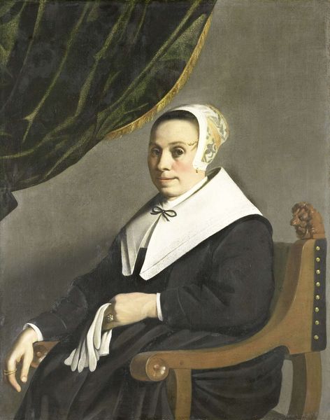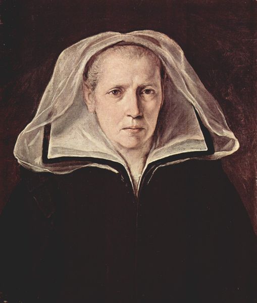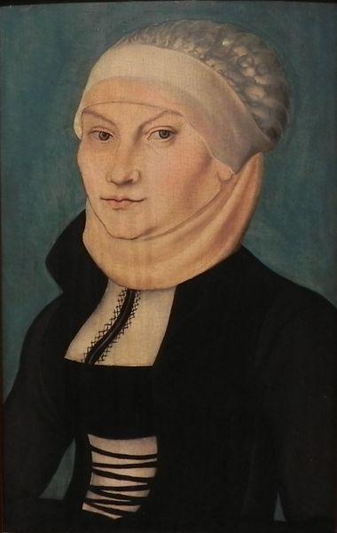 Curator: Holbein the Younger’s "Lady Butts," painted in 1543, is arresting, isn't it? Editor: It is quite something. Stark and formal, almost severe. What is striking is her fur stole, luxurious! Curator: Absolutely, the texture of the fur is incredibly rendered, especially when you consider he’s using oil paint. Holbein really knew his materials, didn’t he? And, in thinking about the means of production at the time, that fur was a significant marker of wealth. It signals consumption patterns and social standing as surely as any tiara today. Editor: Indeed, and Holbein's skill in depicting such finery served a specific social function. Portraits like this weren’t just pretty pictures; they solidified the status of individuals within the complex social hierarchy of Tudor England. Think about the power dynamics inherent in commissioning such a work, a tangible display of patronage and affluence within the political landscape. Curator: You are right, and what about the underlayer and linen used as a base for this piece? Someone had to process this material from natural sources; skilled workers had to weave and cut and sew; how do all those things contribute to how the painting exists? Editor: Precisely! These elements are never neutral. How do you see the role of museums in presenting figures of historical power that, like Lady Butts, derived from elite backgrounds, when the museum’s role is to democratize culture? Curator: That is a good question. The choice of presentation styles, as well as accessibility in content matter should really consider their role in history and what it means for viewers encountering these pieces in the modern day. I wonder if more should be said about who did the labor behind this painting? From Holbein, to all of his materials. Editor: I agree completely. It also compels me to rethink assumptions about visual literacy—whose stories are validated and who holds cultural power through artistic representations. Curator: I now appreciate Holbein's mastery and the complex historical currents it embodies. Editor: A rich reminder that artworks exist not in a vacuum, but in dynamic relation to shifting cultural power structures.