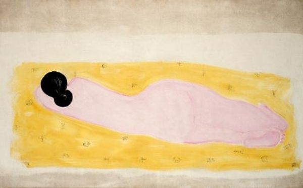 Arnold Peter Weisz-Kubínčan made this watercolour, Fairy Tale Motif, with a delicate touch. Look at the way the paint seems to float on the paper, like a dream half-remembered. The colours are so soft and simple, like a child’s drawing, but there’s also something eerie about it, a feeling of unease. Check out the figure; she’s got this ghostly pallor, but then there’s that spiral on her chest, painted in blues, like a window into her soul or something. It's the focal point for sure. The landscape around her is all rolling hills and dreamy clouds. There’s this tension between the flatness of the paint and the depth it creates – a reminder that art is always a kind of illusion, a trick of the hand. You can see echoes of artists like Odilon Redon, with their strange, symbolic imagery. But Weisz-Kubínčan brings his own raw, almost childlike sensibility to it. It’s not just a picture; it’s a whole world, filled with mystery.