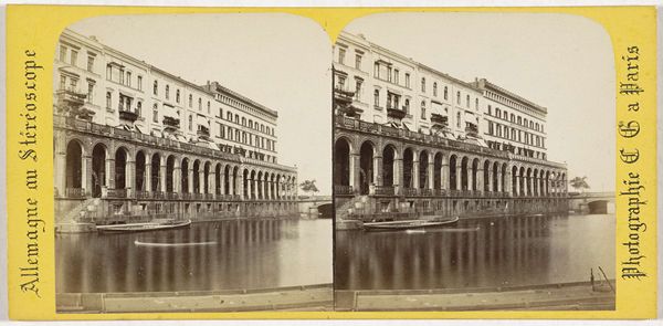 Editor: So, this albumen print, "Exterieur van het Ca' Pesaro te Venetië, Italië" by Carlo Ponti, made sometime between 1852 and 1893… it's a striking architectural shot. There's something so still and stately about it. What catches your eye most when you look at this image? Curator: Well, considering Ponti’s placement in Venice’s history, and photography's, I am curious: How do you think the rise of photography impacted Venetian painting, specifically the tradition of cityscape views, the *vedute*? Editor: That’s interesting. I suppose it offered a new kind of accuracy, almost a documentary feel… competing directly with painters like Canaletto? Curator: Precisely! The established art world faced new competition, democratizing image production. But think about the market – who was buying these images? Tourists, mostly? How did Ponti's photography contribute to Venice's image as a desirable destination? Editor: Okay, so he’s not just recording Venice; he's selling an idea of Venice to a growing tourist market, constructing a kind of... brand? And this romantic, historical Venice then starts overshadowing its contemporary reality? Curator: Exactly! Think about how photography, like this one, helped standardize that iconic imagery. Also, notice how the water almost mirrors the buildings; how might Ponti's aesthetic choices reinforce a specific kind of interpretation or expectation for viewers in, say, London or Paris at the time? Editor: That's fascinating; it reframes how I look at something that initially just seemed like a record of a place. Thank you for highlighting that shift. Curator: Indeed, thinking about images as cultural commodities can teach us how deeply they shape perception! It certainly makes me think twice!