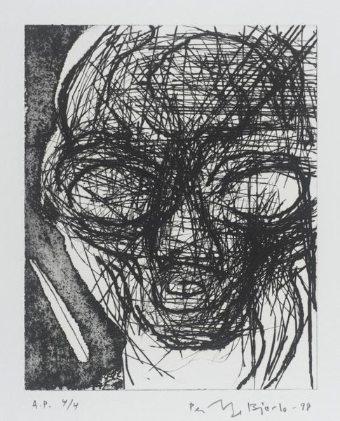 This is Vilen Barsky’s 'Profile,' a work of stark simplicity in monochrome. Note the subject’s posture, bent nearly in two; this is a gesture we have seen across millennia, in depictions of supplication, suffering, and profound grief. The simple stark lines may seem modern, but they echo ancient forms. For example, the distinct headdress with vertical lines atop the head reminds me of the ancient Egyptian Nemes headdress, worn by pharaohs. But here, instead of a symbol of power, it appears almost as a cage or barrier. Consider how the 'Profile' affects you, stirring perhaps feelings of constraint and introspection. Such feelings are primal, carried in the collective unconscious, triggered by images that resonate with our deepest fears and anxieties. This cyclical progression of symbols, reappearing across time, evolves, and adopts new meanings in different historical contexts.