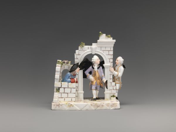 Curator: This Hanukkah lamp, dating from around 1950, presents as a miniature building, crafted from silver, metal, and ceramic. It resides here at the Minneapolis Institute of Art. What are your first thoughts? Editor: Stark, almost brutal in its simplicity, yet undeniably elegant. The severe geometry softens into something quite inviting, wouldn’t you agree? Curator: Precisely. The creator’s deployment of architectural forms evokes deep symbolism. The miniature building recalls both home and synagogue – the centers of Jewish life and worship. What architectural elements particularly speak to you? Editor: The arched doorway is powerfully evocative; a familiar entrance leading into a sanctuary, suggesting transition and welcome. Arches appear frequently in the Ancient Near East and also echo Islamic motifs quite overtly, signaling both history and continuity. Curator: I'd add the materiality enhances that. Silver, with its high reflective index, creates dynamic plays of light and shadow, further complicating its presence. This highlights the object’s construction, the careful assemblage of planes and volumes. What emotional associations does the building shape provoke? Editor: Nostalgia, definitely. The stylized building-shape speaks of diaspora and yearning for a homeland, not necessarily geographic, but of spiritual safety and wholeness. It recalls collective memory as much as individual experience. Curator: Indeed, that cultural memory, activated by familiar architectural forms and religious function, lends the piece an undeniable weight. Its cultural resonance remains potent despite its relative simplicity. Editor: This close look has allowed me to appreciate the lamp’s narrative capacity beyond its basic function. It's a repository of collective ideals. Curator: For me, it underscores the brilliance of form and how it transcends function to speak eloquently of history and meaning.