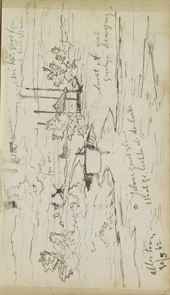 Johannes Tavenraat made this sketch of a cloudscape over a landscape with graphite on paper. As a preliminary drawing, it offers an intimate glimpse into the artist’s working method. Tavenraat was working during a time of growing national consciousness in the Netherlands, when artists and intellectuals emphasized the importance of capturing uniquely Dutch scenery. Here, the flatness of the land is matched by the expansiveness of the sky, a subtle nod to the nation’s geography. There is also some text included in the sketch. As you can see, the inscription does not follow the lines of the land but rather is placed where it could fit. Tavenraat used the empty spaces for the text. It includes descriptive notes written in Dutch, reflecting observations about light, color, and atmosphere. To fully appreciate this sketch, one might consult archival materials, such as letters or diaries, to gain further insight into Tavenraat's artistic practice. The sketch reminds us that art is shaped by the social and institutional contexts in which it is created.