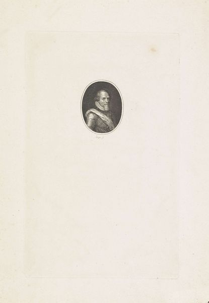 Curator: This engraving, dating from the late 18th to early 19th century, is a portrait of Kenau Hasselaar. The work of Reinier Vinkeles, it currently resides here at the Rijksmuseum. What are your initial thoughts? Editor: Stark! The severe tonality evokes a sense of the unyielding, a kind of... resolute austerity. I find myself wondering about the history and narrative being suggested here, especially given her almost militant presentation. Curator: Hasselaar certainly represents that. Note the halberd she holds, a weapon of war and status, alongside the noose at her hip. She’s a woman who led three hundred women to defend the city of Haarlem against the Spanish invaders in the 16th century. A maternal yet strong protector of home. Editor: Exactly! We see the symbolic weight then: the halberd becomes a representation of civic duty, a kind of maternal defense, not merely individual combat. This begs the question of gender roles being contested during that period. The weapon contradicts common societal expectations, challenging patriarchal structures and inviting reconsideration of women's contributions to the war. Curator: Her garb does have the weight of social position too. It isn’t simple, though the colors might hide it. Her clothes and headdress symbolize a specific societal position that denotes local civic contribution, though perhaps they serve here too to suggest uniformity, to suggest the collected spirit and resolve of a single Dutch defender. Editor: Right, that civic participation must have changed something about the local community, surely influencing it in some material ways? Curator: Most certainly. That commitment to communal wellbeing must have created a deeply entrenched local mythology of female self-sufficiency. In her symbols and resolve, Vinkeles's piece shows us a matriarch, not simply a soldier. She projects that deeply, and her stance reveals an intense inner fortitude that translates beautifully to a wider symbol of communal power. Editor: Yes, this piece shows not merely the surface history, but the deeper layers of how women carve out their power within rigid, historical structures. Curator: Agreed. And the iconography reinforces it further. The composition and Hasselaar’s stern expression reinforce how stories of defiance inspire entire movements of civic duty and, ultimately, progress. Editor: Beautiful. I'll be thinking about Hasselaar's legacy for a while.
