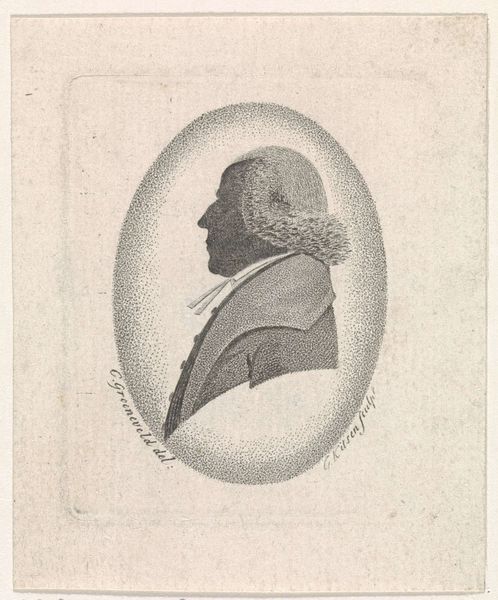Johannes Christiaan Bendorp created this silhouette portrait of an unknown preacher with pen in grey and black ink. The silhouette became popular in the late 18th and early 19th century as a cheap and quick method for creating portraits. Here, the sitter is identifiable only by his profession – the clergy were an important part of Dutch society. The stern profile could suggest he was a member of the Dutch Reformed Church. During this period, the Dutch Reformed Church was the dominant religious institution with close ties to the state and political power. As such, it was often associated with conservatism and the status quo. The historical context of religious and political life in the Netherlands is therefore crucial to understanding the symbolism and meaning of this portrait. By studying vestments, religious texts, and other historical documents, we can learn more about the role of religion in Dutch society at the time and the significance of this portrait.