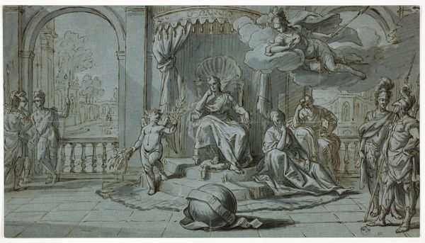 Giulio Bonasone created this print, "An Omen of Augustus's Future Greatness", sometime in the 16th century. Bonasone lived in a world where the narratives of great men, particularly Roman emperors, were constantly revitalized to legitimize power and influence. Here, the artist presents a scene imbued with anticipation, a birth attended by figures caught between grief and wonder, all set against a landscape punctuated by classical architectural motifs. Above, we see a vision of imperial glory foreshadowing Augustus's reign, the symbolic weight of this 'omen' carefully constructed to shape public perception. How does one reconcile the cost of imperial ambition with the promise of order and prosperity? The image invites reflection on the narratives of power we inherit and perpetuate. It asks us to consider whose stories are told, whose are left out, and how these omissions shape our understanding of history and our present.