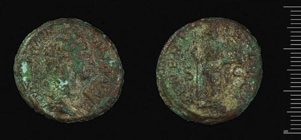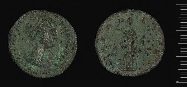 Curator: It's incredible how much history is embedded within this small object. This is a coin, dating back to the time of Gordian III. Editor: There is something incredibly poignant about the patina of age on this coin. It almost feels like a fossil. Curator: The coin's materiality speaks volumes; its metallic composition facilitated not just trade but also the tangible projection of imperial power and ideology. The labor invested in minting such objects circulated symbolic value, reinforcing hierarchies. Editor: And it’s fascinating to consider this coin as a form of propaganda, especially in the context of Roman imperial power. Whose faces got to be immortalized? What messages were they trying to send? Curator: Precisely! These coins serve as a window into the economic and political systems that shaped ancient societies. Editor: Seeing this coin makes me think about the legacy of Roman rule and its impact on contemporary notions of power, representation, and value. Thank you! Curator: Indeed, examining this coin through multiple lenses allows us to appreciate its historical weight, both literally and figuratively.