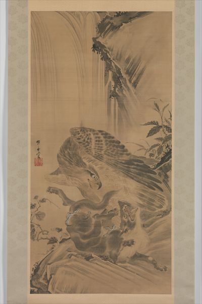 This Japanese scroll painting, “Eagle Pursuing Rabbit,” was created by Kawanabe Kyōsai in the 19th century. The eagle, perched atop a craggy precipice, is about to take flight, its gaze fixed on the rabbit below. The rabbit, a symbol of fertility and cleverness, darts away from the predator in the sky. The motif of the predatory bird and the vulnerable prey resonates across cultures and epochs. Think of the Roman mosaics depicting similar hunting scenes, or even the countless heraldic emblems featuring eagles, symbols of power and dominion. Yet, here, it's not merely a display of dominance. The artist captures a fleeting moment—the tension, the adrenaline—a drama as old as time itself. This dynamic resonates on a subconscious level, evoking primal instincts and the universal dance between hunter and hunted, a cycle that transcends cultural boundaries. It embodies the cyclical nature of life and death and the continuous change and adaptation of symbols.