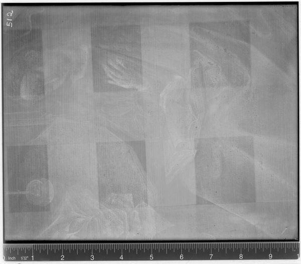 Curator: Here we have an X-radiograph of "Virgin and Child," attributed to the School of Andrea del Verrocchio, here at the Harvard Art Museums. Ghostly, isn't it? Editor: It is! Like peering into the soul of a painting. You see the faint outlines, the hidden structures… almost like a secret history being revealed. Curator: Exactly! X-radiography is invaluable for conservators. It reveals the artist's process, the underdrawings, and alterations made over time, offering us insights into the creation of the work and its condition. Editor: So, it's not just about the pretty picture; it's about understanding what went into it, the evolution of the artist’s vision. It makes me wonder about all the unseen decisions, the layers of thought and intention. Curator: Precisely. The technique also allows us to compare this work with others from Verrocchio's school, furthering our understanding of workshop practices and artistic attribution in Renaissance Italy. Editor: It gives you a completely fresh perspective. Art becomes a conversation between the visible and the invisible, the tangible and the conceptual. I love that.
