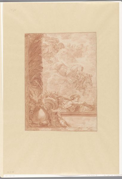 Curator: I’m struck immediately by the airy, almost dreamlike quality. The monochrome palette, combined with the delicate linework, suggests a sense of fleeting beauty. Editor: Indeed. We are looking at "Illustration til 'L'Amour et Psyché,'" created by Lorenz Frølich in 1862. The medium is described as engraving and watercolor on toned paper, and it resides here at the SMK, Statens Museum for Kunst. It's a Romantic piece. Curator: The composition, segmented into distinct vignettes framed by swirling organic forms, hints at a narrative structure. How do the historical depictions of Cupid and Psyche impact its reading? Editor: The resurgence of interest in classical mythology during the Romantic period shaped how artists and society viewed beauty, desire, and morality. Frølich's work participates in a dialogue about the nature of love in a rapidly changing society. This piece likely reflects a desire to imbue contemporary experience with the gravity and ideals associated with antiquity. The image likely appeared in an illustrated publication, spreading those ideas even more. Curator: I see your point, but what I find particularly interesting is the formal treatment of space. The areas around the active parts in the two little “windows” are starkly contrasted to a seemingly flat plane, allowing our focus to hone in. And the light, almost ethereal. Editor: Precisely. Artists like Frølich used mythology to encode messages, in ways both condoned by society, but also, in subversive and even radical terms. This romantic vision of mythology allowed the public discourse to express complex themes through safe and beautiful, albeit codified, narratives. This image romanticizes ancient stories in line with nineteenth-century sensibilities, and it is no mistake the viewer feels comforted by the softness. Curator: The piece really seems to invite introspection about our long relationship with myth and how we keep these ideas alive, if altered in any way. Editor: I agree; it serves as a bridge between the classical world and the evolving social and emotional landscape of the 19th century, inviting us to think about enduring human values.