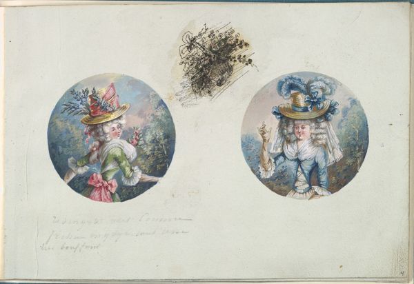 This sheet of sketches with pen and watercolor wash is an intimate glimpse into the world of fashion and identity. The anonymous artist captures a parasol and two muffs, objects that, beyond their practical uses, were potent symbols of femininity, status, and perhaps even resistance. These accessories weren't just about keeping the sun off one's skin or hands warm. They were tools for navigating social spaces, signaling one's position and aspirations within a rigid social hierarchy. In a time when women's roles were narrowly defined, such objects became a language, a way to express individuality within the confines of expectation. The handwritten notes accompanying the sketches invite us into the artist's thought process, adding another layer to our understanding. It's a reminder that even seemingly decorative items can be imbued with meaning. The sketches invite us to reflect on the objects that shape our own identities.