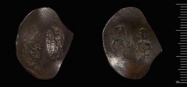 Curator: Here we have a "Coin of Manuel I," held in the Harvard Art Museums, weighing a mere 3.67 grams. Editor: It’s striking how worn the image is; a palpable sense of time and use. Curator: Indeed. Its diminutive size speaks volumes about its intended function: facilitating everyday exchange and perhaps projecting imperial power on a micro-scale. The material itself, presumably a base metal, reflects the economic realities of the period. Editor: But consider the iconography—the faint figures etched into the surface. Don’t they suggest something grander? Echoes of Byzantine authority, divine right perhaps? Even in such a humble object, these symbols speak volumes about cultural aspirations and the projection of power. Curator: I'm more fascinated by the process—the labor involved in its creation, the social and economic forces that dictated its form and circulation. Editor: Perhaps, but those very forces shaped the symbols themselves. Curator: A coin both reveals the material conditions of its making and projects symbolic authority. Editor: Exactly! Both humble token and powerful emblem, bound by use.