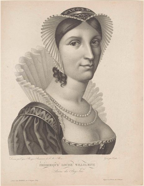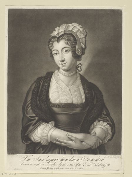 Curator: This is an engraving titled "The Shrimp Girl" by William Hogarth. Editor: What strikes me immediately is the meticulous detail rendered through the dense network of lines. It creates a tangible texture to her clothing, but also captures a momentary spark in her gaze. Curator: Indeed. The style itself harkens back to realism with Rococo influence, visible in the almost performative, theatrical air around this humble figure, elevated through precise, elegant linework. This also brings to mind earlier popular theatrical forms. Editor: There's also something compelling in the hat perched upon her head - a flat expanse loaded, presumably, with her wares. The placement draws a line that directs your eye toward her open gaze. Her very subtle smile makes the scene so appealing and alive. Curator: It is very evocative. Here, Hogarth, through the engraving, seems to memorialize the image of a common woman, thus integrating a symbol of the burgeoning mercantile class. I see not just a genre painting, but a representation of societal integration through folk art tradition. Editor: I wonder if that almost caricature-like precision – the sharp lines and dense textures – both idealizes and makes the vendor a kind of emblem, transforming labor into something akin to Rococo artistry. Curator: It certainly pushes that line. We, the viewers, are granted access into this everyday narrative, encouraged to identify her existence with the spirit of an industrious culture. And also to consider where the "folk" end and the idealised types begin, if they ever truly do. Editor: I agree. Hogarth truly captured more than a street seller in this work. It's as though he has caught a brief fleeting sentiment, that tells a very particular yet resonant human story.
