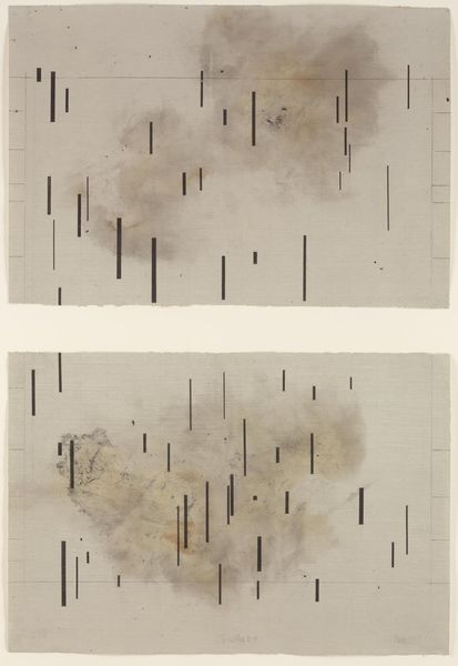 Ed Ruscha made *The Final End* and, well, the title alone gives it some weight, doesn’t it? Look at how he's built these blurred, smudgy forms on the paper, like he’s almost trying to erase them as he makes them. The way he layers that pale yellow on top, those delicate lines of grass, it's like something growing out of the darkness. I love how present the materials are; you can almost feel the paper's texture, the soft give of it, and imagine the charcoal smudging under his hand. See how the yellow paint sits on the surface? It’s like a memory, a whisper of hope over something heavy. That small patch of denser yellow on the left is particularly striking. It’s so fragile, yet so determined, like a stubborn weed pushing through concrete. I think about Vija Celmins a lot when I see work like this. There's something about the way Ruscha embraces ambiguity, letting the image hover between representation and abstraction, that feels like an open invitation to keep looking, to keep questioning. It is an invitation to experience the world, both formally and emotionally.