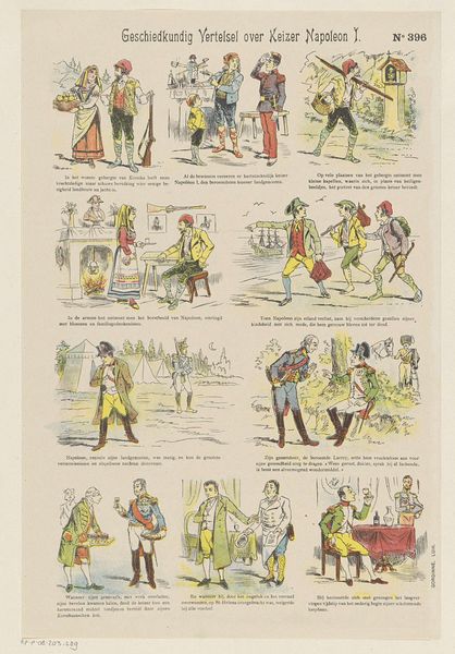 "Soldaten", or Soldiers, by Glenisson & Van Genechten, is a print made with lithography, a process that allows for images to be reproduced quickly. The image shows two smartly outfitted soldiers in green, red, and yellow uniforms, with a poem underneath each. The lithographic process is key here. It would have allowed for the relatively inexpensive production of images and texts for popular consumption. While the artist may have made a unique drawing, its reproduction enabled widespread distribution. The print's social significance lies in this accessibility, bringing images of military prowess and patriotic verse to a broad audience. It blurs the lines between art, propaganda, and commodity, reflecting a society where images and ideas could circulate widely, shaping public opinion and national identity. This artwork prompts us to consider how materials, making, and context converge to shape the meaning of an artwork.