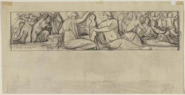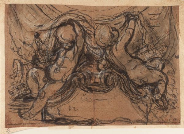 Editor: Here we have Leo Gestel's pencil drawing, "Leo Gestel Eating at a Table with a Woman," created sometime between 1911 and 1941. There's an immediacy to the sketch, like a fleeting moment captured. It gives me a sense of private, perhaps even strained, intimacy. What do you see in this piece? Curator: It's fascinating how Gestel uses the loose lines, isn't it? It hints at a psychological weight. The man's almost Bacchanalian act of eating grapes clashes with the woman's slouched, despondent pose. Editor: Absolutely, there is a strong contrast there! Curator: What do grapes usually signify in art? Think about the Roman god Bacchus. Editor: Oh right, so indulgence, perhaps intoxication? Maybe it's meant to hint at a disconnect between the two figures at the table? He is celebrating life while she is mourning? Curator: Precisely. The table itself, with its wine and simple objects, functions as an altar, highlighting rituals – shared or isolated. Think of Dutch still life paintings, the "vanitas." Do you see any echo of this artistic tradition in the Gestel’s intimate setting? Editor: The passing of time maybe, like, he enjoys it while she despairs? Wow! Gestel really packs a lot into what seems like a quick sketch. I really wasn't expecting to go this deep! Curator: It’s a glimpse into a private drama. Gestel invites us to decode these familiar symbols within an emotional tableau. Editor: It is so interesting how familiar imagery gains unexpected resonance from a personal context. Thank you!