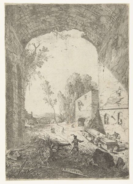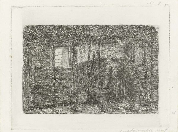 Anton Mauve created this etching of a hay barn, titled Hooischuur, during a time when the Netherlands was undergoing significant social and economic change. Artists like Mauve often turned to rural scenes, perhaps reflecting a longing for simpler times amidst rapid industrialization. The image shows a humble hay barn, rendered with a stark realism that invites reflection on the lives of rural workers. Mauve's artistic choices are fascinating when considered against the backdrop of his personal life. As a mentor and relative to Vincent van Gogh, Mauve's work embodies a focus on the everyday and the emotional weight of ordinary life. His work gently challenges the traditional heroic depictions of labor, instead focusing on capturing the quiet dignity of rural existence. "Hooischuur" not only captures a moment in time but also evokes a sense of empathy.