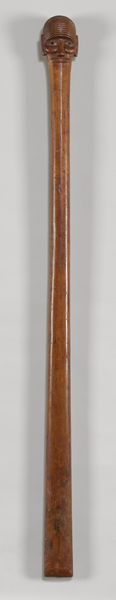 This umbrella handle, made of wood and bone by Gustav Schnitzler, is a reminder that even functional objects can be beautiful. The pale wood has vertical striations – maybe it’s bamboo? – and that simple hole is a mark of connection. It speaks to a larger mechanism, something meant to open, close, shelter, protect. I love the way the bone caps bookend the wood, offering a cool contrast in texture and tone. It's interesting to consider how the maker engages with the material, allowing the grain of the wood to guide the form. A minimalist like Agnes Martin comes to mind. It’s that sense of quiet labor, a steady, meditative practice. In our chaotic world, there’s something grounding about seeing this object, imagining its creation, its purpose, its place in someone's daily life. It feels complete without being loud.