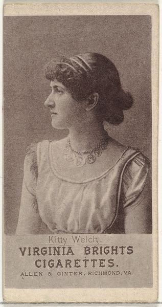 This small card was printed by W. Duke, Sons & Co., around the turn of the 20th century, as a promotional item for Cross Cut Cigarettes. The image is a photograph, likely mass-produced through a photomechanical process. The card’s sepia tone gives it an antique feel, but it’s worth remembering that this was a contemporary image at the time, designed to appeal to smokers. The actress depicted, swathed in a lace shawl, is meant to evoke glamour and sophistication, qualities the manufacturer hoped would rub off on their product. Consider the context of its making. The cigarette industry relied on mass production, and images like these were crucial to building brand identity. They were essentially tools of marketing, leveraging celebrity culture to drive consumption. This card, seemingly a humble artifact, speaks volumes about the rise of consumerism and the power of image-making in shaping our desires. It highlights the intertwined relationship between commerce, celebrity, and visual culture.