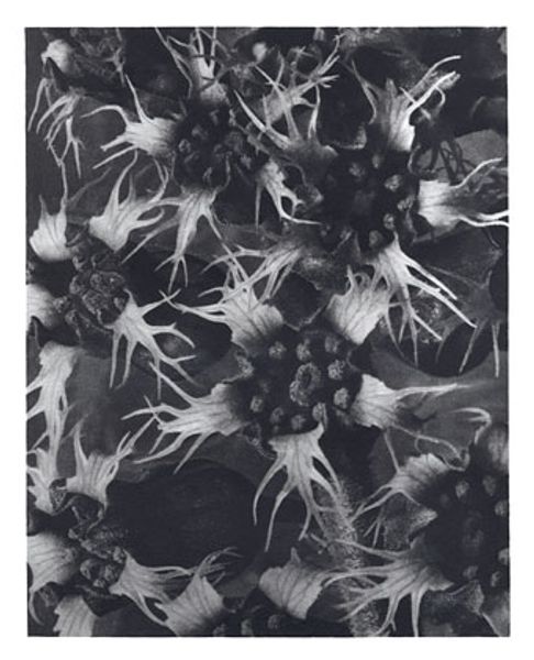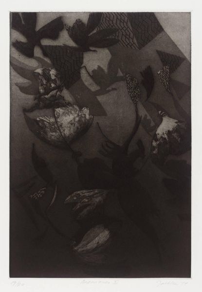 Editor: This is Daido Moriyama's "Cabbage," a black and white photograph. I find the close-up and contrast so striking, it almost feels like a landscape. What do you see in this piece? Curator: I see a powerful commentary on societal structures. Moriyama often used high contrast to reveal the stark realities of postwar Japan. Here, the cabbage, an ordinary food, becomes a symbol. Editor: A symbol of what exactly? Curator: Perhaps of resilience, growth even in harsh environments, but also of the overlooked and undervalued. Consider the social context of food scarcity and class disparities. Editor: That gives me a lot to think about, I never would have made that connection! Curator: It's about seeing beyond the surface, questioning the narratives we inherit.
