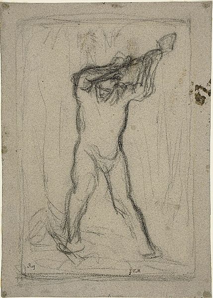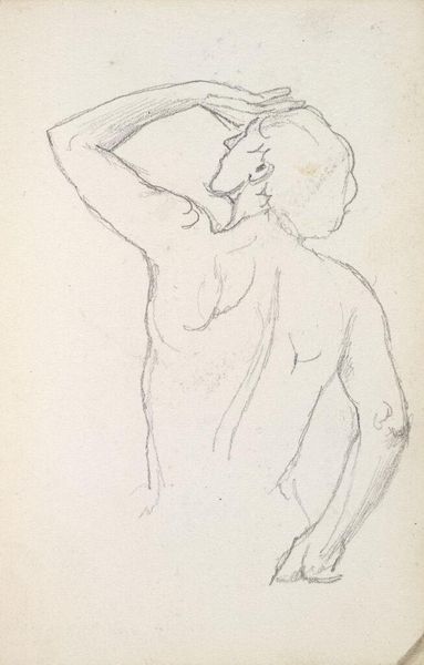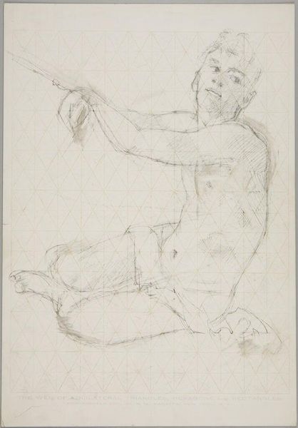 Curator: Here we have Denman Waldo Ross's "David with Hands Raised," a drawing of around 35 by 21 centimeters, created in December 1923. Editor: It strikes me as a study in tension, a figure caught between support and strain. The sketchy lines convey a real sense of effort. Curator: Indeed, the figure of David, often associated with triumph, is here presented in a moment of apparent struggle. The raised hands, instead of celebrating victory, suggest a search for balance. Editor: The artist's use of angular lines and geometric scaffolding seems key. It's not just the figure's pose but the structure supporting it that communicates this precariousness. Curator: Perhaps it's about the psychological weight of heroism itself, the internal struggle beneath the celebrated surface. Editor: I see it now. Ross has made visible the very architecture of internal strain. Curator: A fitting reminder of how even our heroes are not immune to human vulnerability. Editor: Precisely, art reminding us there's structure to support us through the human condition.