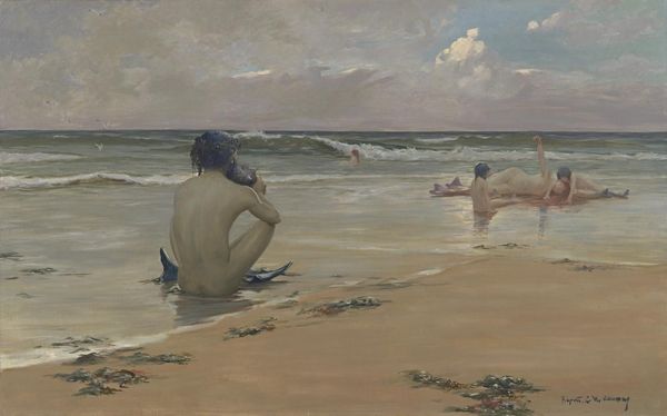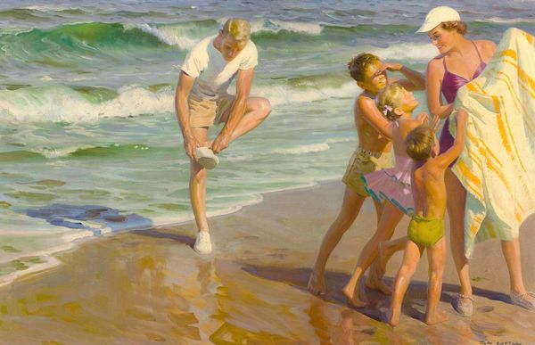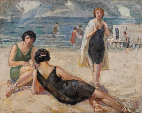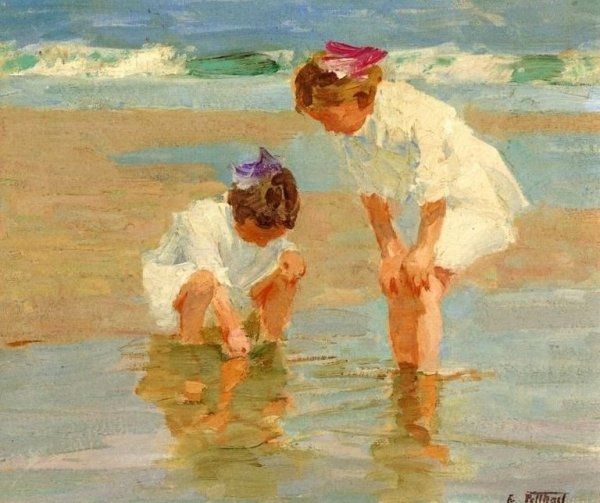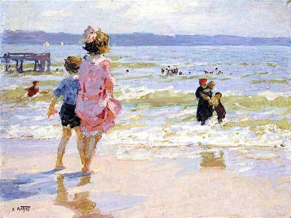 Edward Henry Potthast made this painting, “Blonde and Brunette,” with oil on canvas. The way the artist has applied the paint, with short, visible strokes, it’s clear that he’s less interested in a smooth, photographic realism, than in capturing a sense of light and movement. You can almost feel the ocean breeze! Potthast was part of a broader movement called American Impressionism, which embraced these techniques. It’s not just about how things look, but how they feel. Impressionism, as a style, also has a lot to do with the rise of industrial capitalism. The availability of mass-produced paints in tubes meant that artists could easily work outdoors, responding to the changing conditions of the world around them. Leisure time, like that being enjoyed by these beach-goers, was also becoming more common. Painting thus becomes less about religious or historical subjects, and more about the everyday experiences of modern life. It is a democratization of content, made possible by shifts in labor and leisure. So what seems like a simple scene is actually full of social meaning.