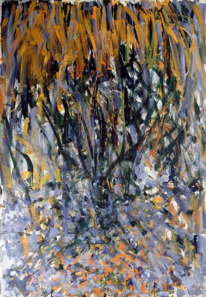 Zani Corrado made this untitled work with paint on paper, but when? I love how this painting isn't trying to be anything other than itself. It's a record of movement. Look at the way Corrado uses the brush, those big confident strokes of black paint laying down the essence of a tree without getting bogged down in the details. The grays and lavenders, are almost like ghosts of colors. The paint isn’t overworked. Everything feels immediate, like a snapshot of a fleeting moment. See how those thick black lines define the trunks, but also create a kind of rhythm? It reminds me of Twombly, but with a raw, untamed energy. It's a conversation across time, an echo of gestures, and a reminder that art is always in motion, always becoming.