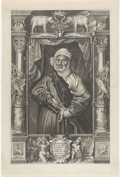 This engraving by Nicolaes de Bruyn depicts Godfried van Bouillon within a medallion, encircled by symbolic ornamentations. Consider the bat, a creature of the night, perched above the portrait. Historically, the bat has been linked with superstition and the realm of shadows. However, it is also perceived as a symbol of vigilance. Look at how the owl is depicted in the lower part of the frame, with the same watchful eye. Both creatures, though seemingly opposites, share this trait. Think of the cyclical nature of symbols, how they resurface, evolve, and take on new meanings in different contexts, engaging us on a deep, subconscious level.