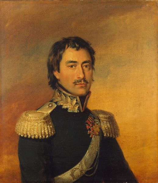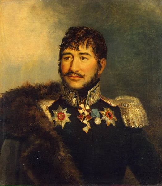 Timofey Dmitriyevich Grekov, Russian Major General, was painted by George Dawe using oil on canvas. Dawe uses traditional artistic materials, but it's the embellishments on Grekov's uniform that I find most compelling. His epaulettes, awards and decorations are depicted with a high level of detail. Each has a clear and distinct presence. These additions speak to an entire industry of skilled artisans who worked with various materials such as gold, silver, textiles, and precious stones to create these status symbols. The artist’s labour, and that of these anonymous makers, speaks to the larger social context of military campaigns, which had an impact not only on those in power but on all social classes. The cost of these materials, the labour required to produce them, and their meaning as status symbols highlight class distinctions within society. When we consider such elements, we can appreciate the skill and effort involved in both the creation and interpretation of this artwork.