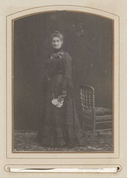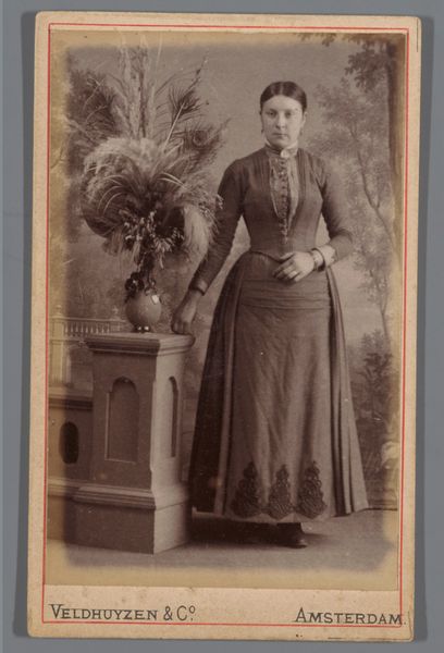 This is a portrait photograph of a seated woman, made by A. Zagel in an unknown location and date. The visual codes in this image speak volumes about the social conventions of its time. Let's consider the cultural references evident here. The woman's formal attire, the ornate studio backdrop, and the carefully posed composition all suggest a society that valued decorum and status. This image was likely made during a period when photography was becoming more accessible but still carried a certain prestige. The sitter may have come from a wealthy family, who had the financial means to commission such portraits. The very act of posing for a photograph was a way of participating in the social rituals of the time. To truly understand this image, we need to delve deeper into the social and institutional histories of the period. Archival research, studies of fashion and photography, and investigations into the cultural norms of the time would help us contextualize it better. Art, after all, is always contingent on its social context.