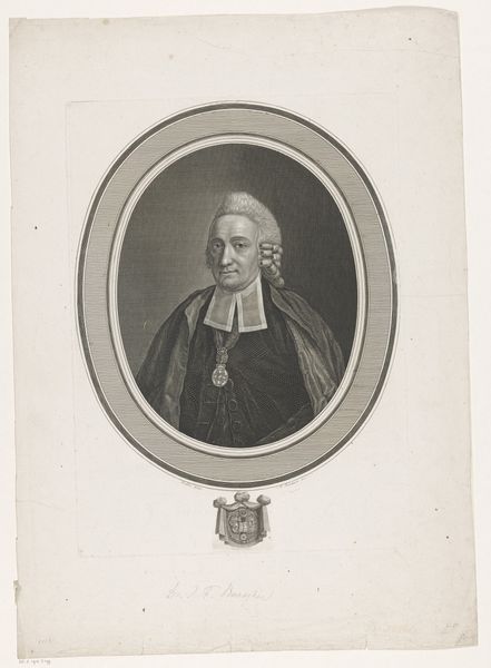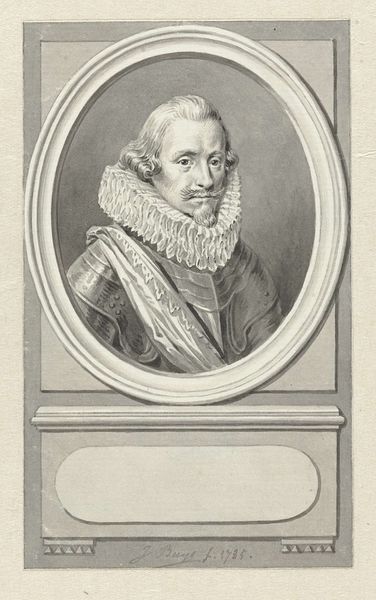 This portrait of Daniel Crommelin is rendered in delicate strokes of graphite on ivory, its circular form creating an intimate viewing experience. The monochrome palette focuses attention on the subject's profile, framed by a meticulously detailed wig. Notice how the artist employs a structured approach: the wig's curls and the sitter’s facial features are depicted with controlled lines, offering an almost architectural quality. This formal rigidity speaks to the values of the time, where composure and restraint were highly regarded, mirroring the Enlightenment's emphasis on reason and order. The composition, while simple, engages with the semiotic language of portraiture to convey status. Consider the absence of color as a deliberate choice. What does this reduction signify about the subject and the artist’s intent? This choice encourages a deeper engagement with form and structure, revealing how even in simplicity, a portrait can communicate complex narratives about identity and societal expectations.